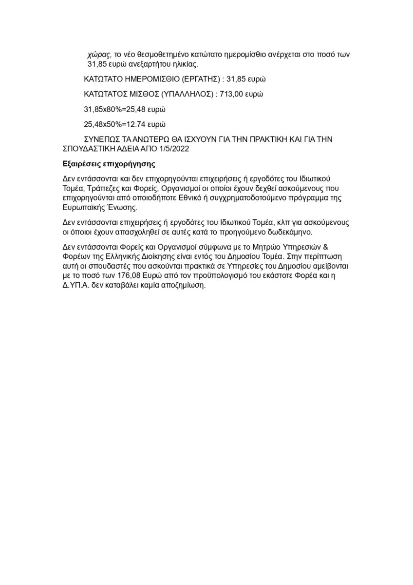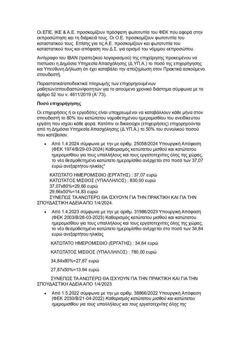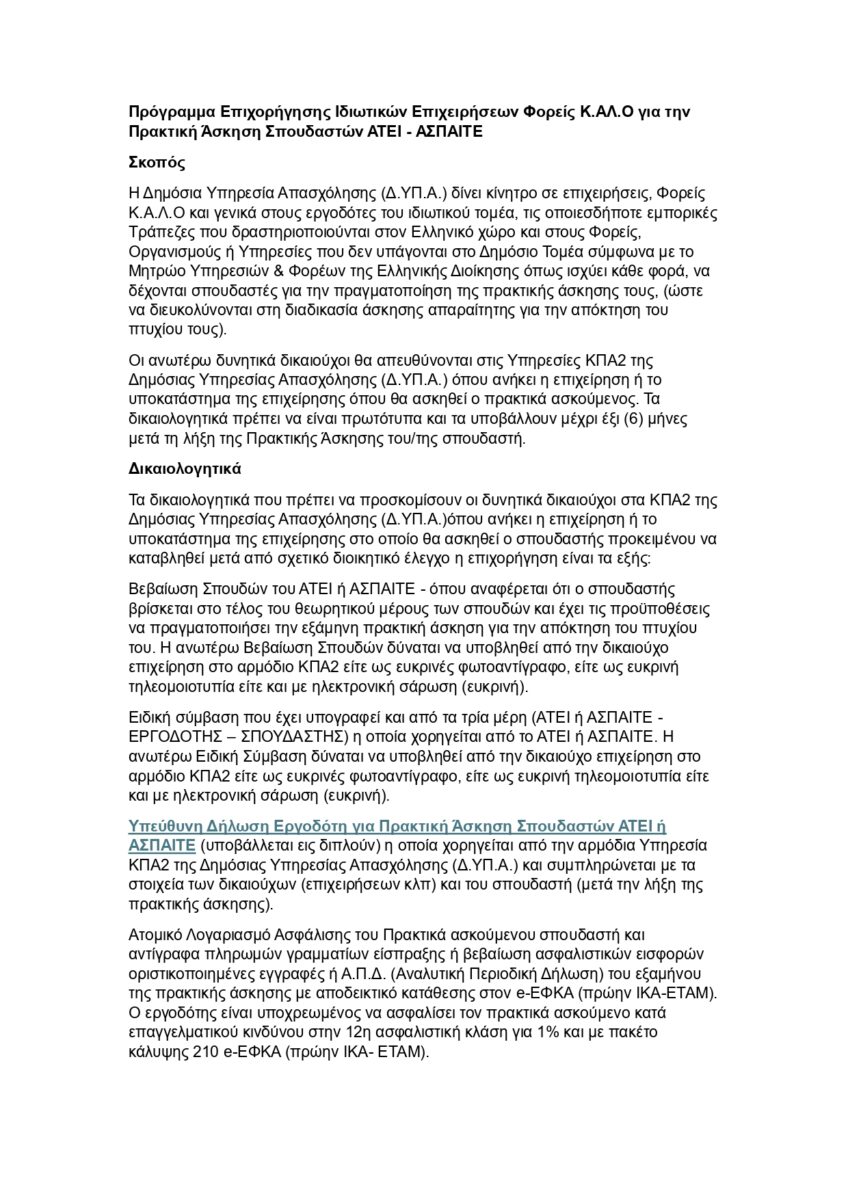 Πρόγραμμα Επιχορήγησης Ιδιωτικών Επιχειρήσεων Φορείς Κ.ΑΛ.Ο για την Πρακτική Άσκηση Σπουδαστών ΑΤΕ